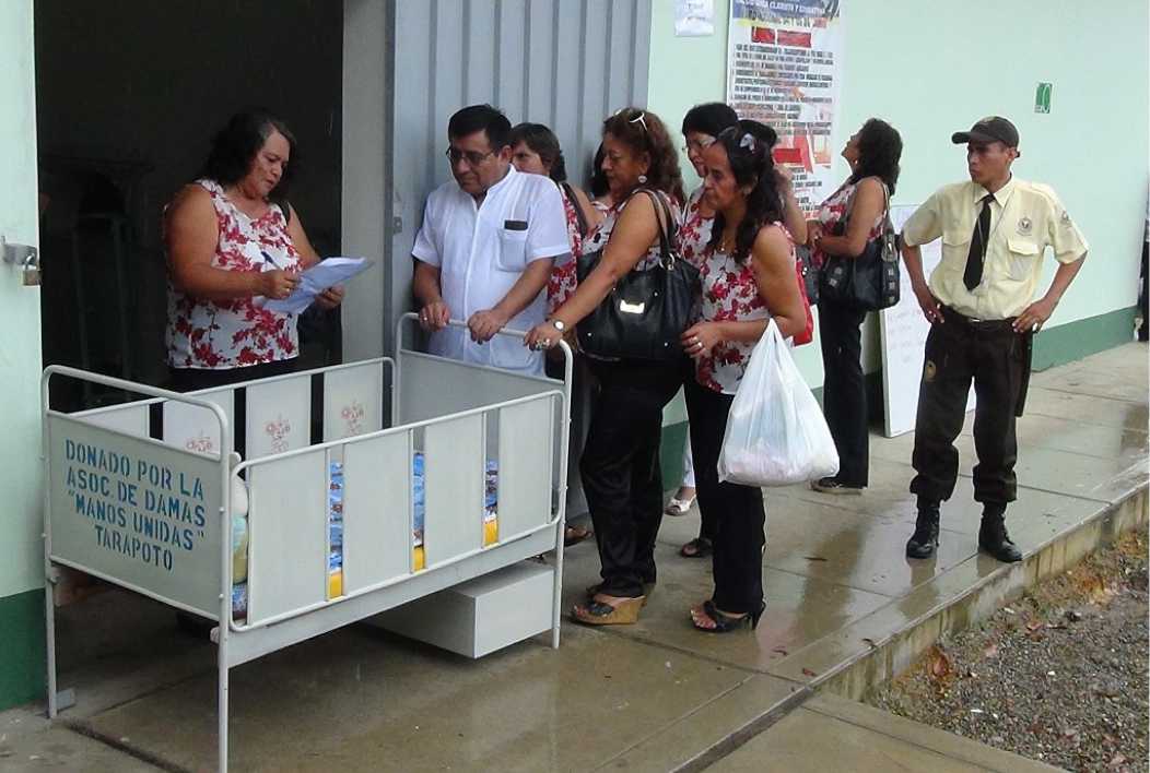 Las integrantes del comité de damas Manos Unidas, llegaron hasta el hospital de Contingencia de Tarapoto, con la finalidad de donar una cuna para el servicio de emergencia pedriática, en los próximos días harán lo mismo en los centros de Salud de la urbanización Nueve de Abril y del distrito de Morales.
