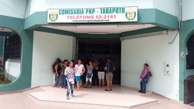 Mientras tanto los agraviados estuvieron varias horas en los exteriores de la Comisaría de Tarapoto donde cada uno de ellos brindó sus declaraciones y también denunciaron a Peter Mendoza que permanece detenido. (Hugo Anteparra)