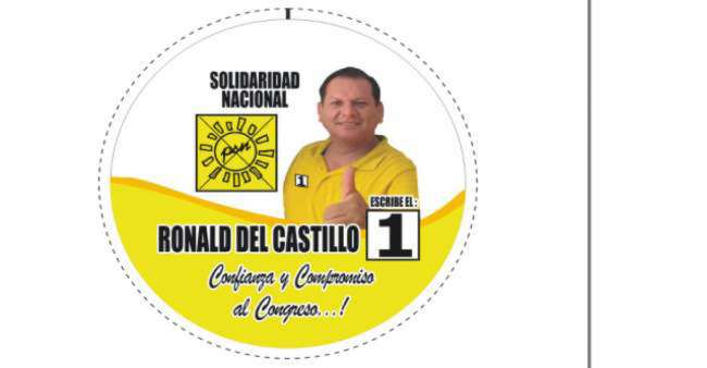 Mediante Recurso de Apelación presentado el 2 de diciembre del 2019, se procedió a Declarar FUNDADO el recurso de apelación a la solicitud de inscripción de Ronald del Castillo Flores, como candidato al Congreso con el Nº 1 por la agrupación Solidaridad Nacional.
