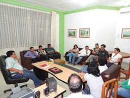 Reunidos en los ambientes de la Gerencia Territorial Bajo Mayo, el presidente regional habló directamente sobre con la Dirección de Concesiones en su representada, Ing. Patricia Cama, administradora de la de la contratista IIRSA Norte, la asesora del Ministro de Transportes, Briggitt Bencich y los funcionarios de Provías Nacional e IIRSA Norte.