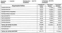 Tercero se ubica Manuel Aguilar de Acción Popular, quien obtuvo 50312 votos, que significan el 16.095% de los votos.