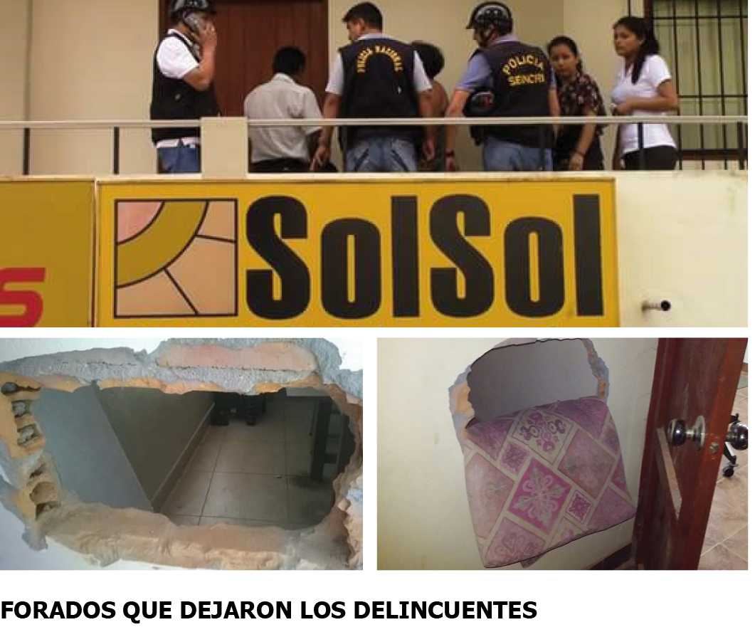 Yurimaguas. Haciendo tres forados en el piso del segundo nivel y pared de las habitaciones del primero, seis delincuentes, cinco hombres y una mujer, perpetraron el martes 24 de los corrientes por la madrugada, un robo en foto estudio Solsol y botica Mifarma, ubicados en la tercera cuadra de la calle César López de la ciudad de Yurimaguas.