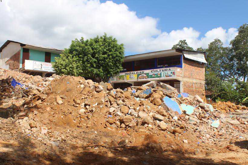 Trabajos de demolición de la Institución Educativa 0256 de la ciudad de Lamas, está en su recta final, para dar paso a la nueva edificación del plantel.