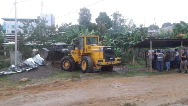 La Municipalidad Distrital de La Banda de Shilcayo, a través de la División de Fiscalización, procedió a la demolición de un predio construido en zona intangible o prohibida por la municipalidad, infracción considerada muy grave, por lo que se le impuso una multa de 4 mil 200 soles, como sanción complementaria de demolición.