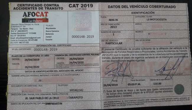 A pesar de eso la “AFOCAT Las Palmeras”, ha comenzado a emitir CAT, sin contar con la autorización de la SBS, basados solo en una Resolución de Alcaldía, la n° 129-2019-A; es decir, están emitiendo Certificados Contra Accidentes de Tránsito que según el abogado Oscar Cabrera son nulos.