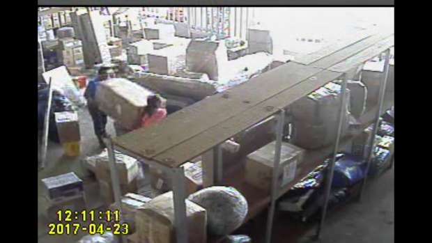 Las cámaras de video vigilancia de la empresa de transportes Móvil Tours captaron a dos personas que se llevan sin ningún problema mercadería de propiedad de Zapatería July, el monto de lo robado asciende a más de 8 mil soles y los agraviados tras denunciar el hecho manifestaron que son cinco bultos que desaparecieron del almacén.