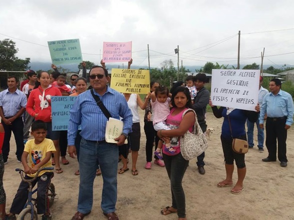 Moyobamba. Cansados de tantas mentiras, los pobladores de la urbanización Los Jardines ubicada a la altura del peaje de la empresa IIRSA Norte, no tuvieron otra alternativa más que realizar una protesta con carteles en mano expresando su malestar por los problemas que atraviesan debido al colapso del sistema de alcantarillado, inconvenientes en servicio de luz y la falta de decisión política para hacer realidad el proyecto de Asfaltado y veredizacion a pesar que desde el 2015 cuenta con un presupuesto de 7 millones soles aprobados.