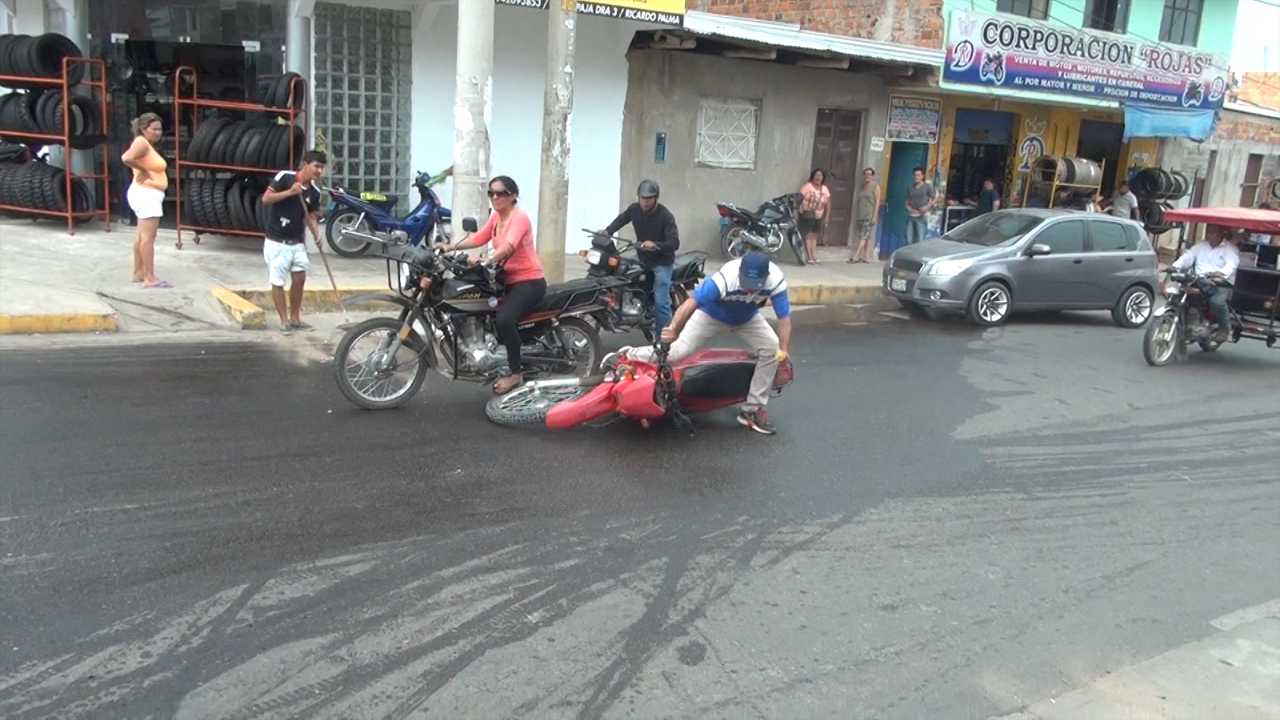 Diez motociclistas se despistaron en la intersección de los jirones Shapaja con Ricardo Palma en el barrio Huayco de Tarapoto, luego que una persona no identificada regó circunstancialmente petróleo en el asfalto, los vecinos en vez de advertir el peligro miraron por varios minutos como se producían los accidentes de tránsito.