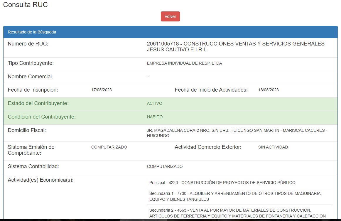 El caso de Elia Piña Satalaya, quien es socia accionista, representante, y titular gerente de la empresa “Construcciones Ventas y Servicios Generales Jesús Cautivo E.I.R.L.” sigue dando que hablar. Porque se trataría de una proveedora privilegiada de la Municipalidad Provincial de Mariscal Cáceres – Juanjui. En vista de la empresa, “Jesús Cautivo E.I.R.L.” se ha beneficiado con contratos para diferentes servicios y entrega de bienes con la municipalidad de Juanjui, por casi 800 mil soles. A pesar que se trata de una empresa que, según consulta RUC, inició actividades el 18 de mayo del 2023, es decir que en poco más de seis meses de creada para proveer al Estado, obtuvo jugosos contratos con el municipio de Juanjui.