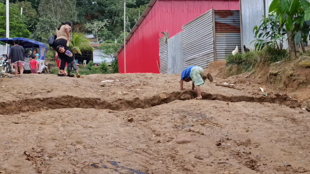 Los vecinos de un sector de la asociación de vivienda 16 de Noviembre, en La Banda de Shilcayo, viven momentos de angustia debido al avance de un derrumbe que pone en riesgo sus viviendas. Señalan que permanecen en constante zozobra ante el temor de que la tierra continúe cediendo, situación que, afirman se agrava cada vez que se registran lluvias en la zona.