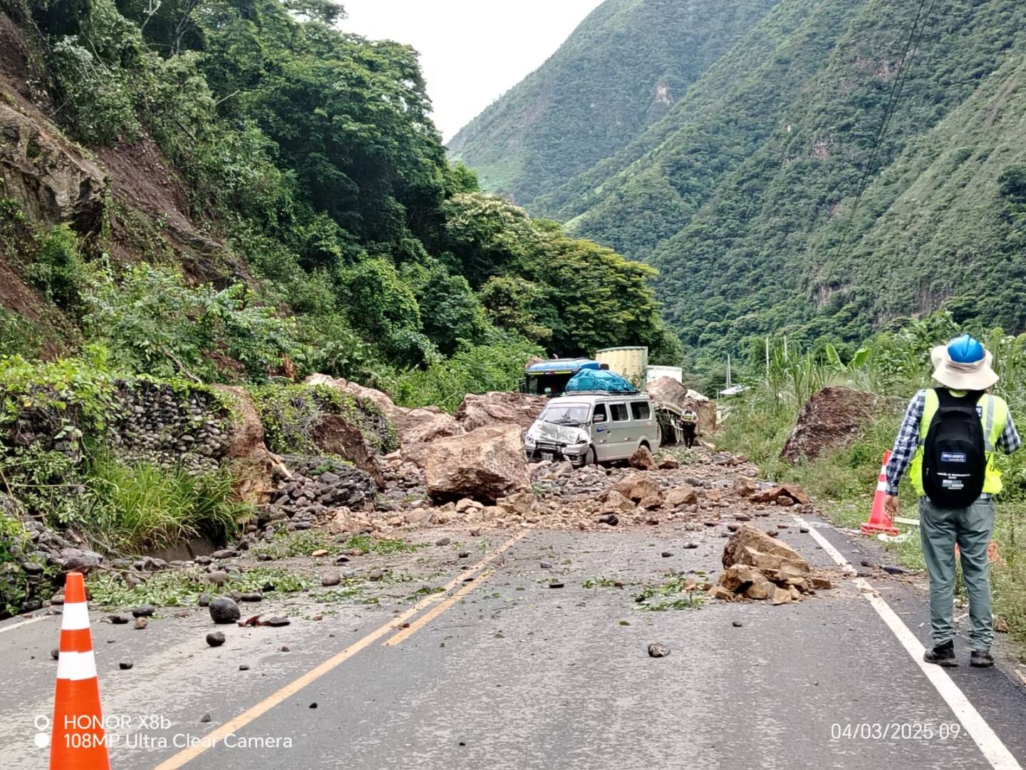 Personal de IIRSA Norte viene exhortado a los conductores a tomar precauciones y mantenerse informados sobre el estado de la vía. Asimismo, se ha desplegado maquinaria pesada en la zona para acelerar los trabajos de remoción de escombros y restablecer el tráfico lo antes posible. Por: Hugo Anteparra