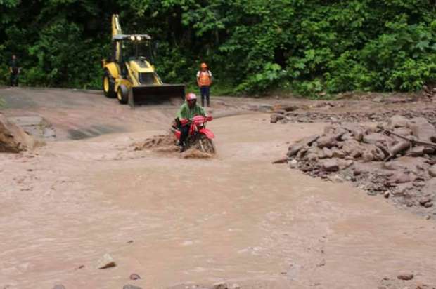 El derrumbe se produjo luego que en la zona se produjera una torrencial lluvia que de-sestabilizó el cerro Mativuelo, afortunadamente a esa hora no pasó ningún vehículo que pudo haber sido arrasado por el lodo.