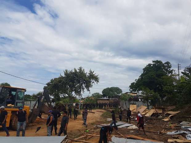 El juez Mariano Méndez Calderón, junto a un fuerte contingente policial llegó al lugar y tras dar a conocer a los inversores la determinación del Poder Judicial dio un plazo determinado para que abandonen el predio y evitar costo social. Sin embargo los dirigentes señalaron que no fueron notificados y trataron de poner resistencia, pero al ver la superioridad numérica de efectivos, salieron pacíficamente.