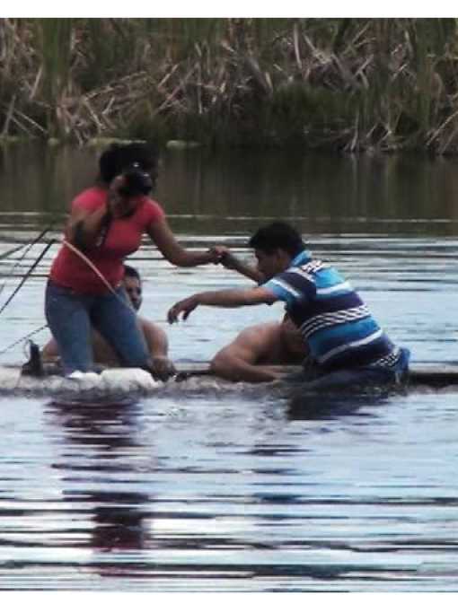 Al ver que el bote se hundía, los pasajeros se arrojaron al río para nadar hasta la orilla, pero la infortunada madre, su pequeño, y la otra niña, no pudieron ser salvados por la fuerza del agua, mientras los demás ocupantes se pusieron a buen recaudo en la orilla del Huallaga.