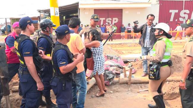 Luego de varios minutos de discusiones y a pesar que los pernos de la base ya habían sido retirados, los representantes de la empresa Imágenes.com a cargo de Fredy Peláez y Katia Nolberto, pusieron resistencia, señalando que estarían cometiendo abuso de autoridad con ellos, sin embargo, los serenos y policías tuvieron que utilizar la fuerza.