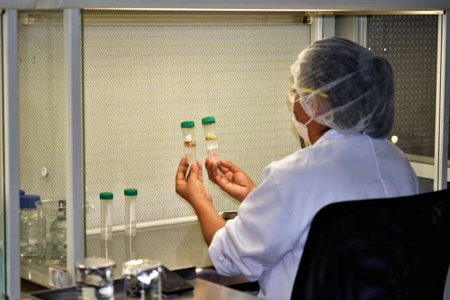 Con tal fin se realizaron las actividades relacionados a la Adaptación de técnicas de micro propagación para la clonación de genotipos selectos de cacao (INIA/DRASAM), que tiene por finalidad evaluar el potencial de regeneración de diferentes genotipos de cacao (Theobroma cacao L.) vía embriogénesis somática; optimizar metodologías de propagación y disponer de un método que permita propagar material vegetal de calidad con individuos productivos, tolerantes a enfermedades, y otros atributos, que puedan llegar a formar parte de la renovación de plantas adultas de cacao y al incremento de nuevas áreas en la región y país, Estrategias biológicas de reducción de cadmio en suelo y plantas de cacao (IIAP/DRASAM), con el objetivo de reducir el cadmio en plantaciones productivas de este cultivo con aplicación de cepas nativas de Trichoderma spp., enmiendas orgánicas y especies vegetales en la región San Martín.