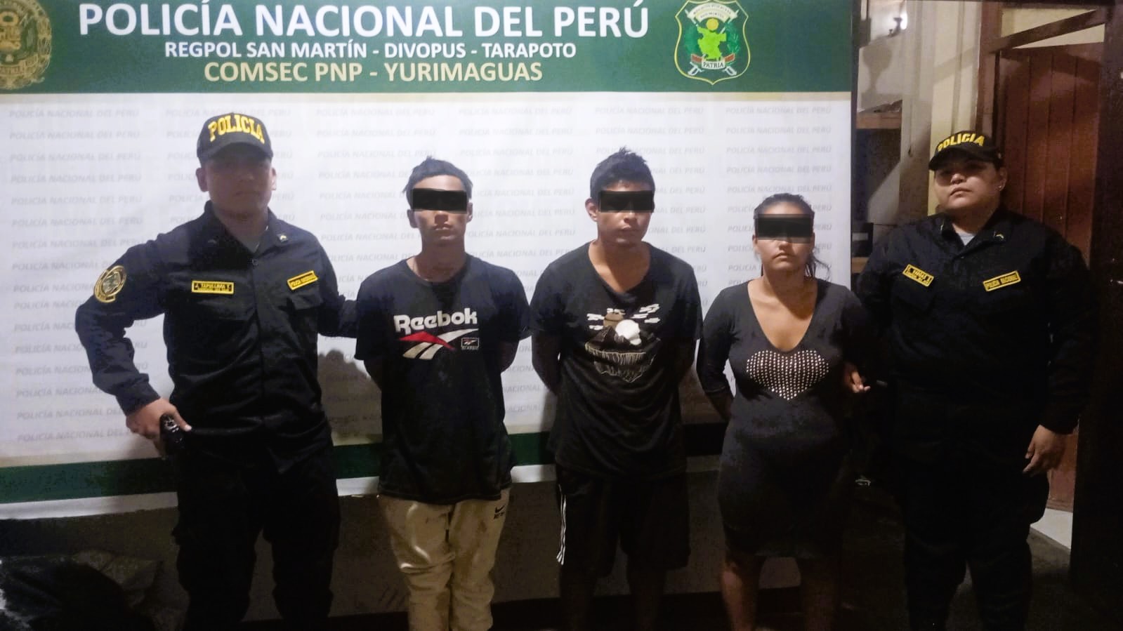 Personal de la Comisaría Sectorial de Yurimaguas, en coordinación con el Serenazgo de la Municipalidad Provincial de Alto Amazonas, logró la desarticulación de la presunta banda criminal autodenominada «Los Chalacos», integrada por Dey Zumaeta Isuiza (23), alias «El Wachi»; Orlando Barón Salas (26), alias «Nene Malo»; y Simi Maribel del Águila Gatica (24), alias «Shina», quienes estarían involucrados en el presunto delito contra el patrimonio en la modalidad de hurto agravado.