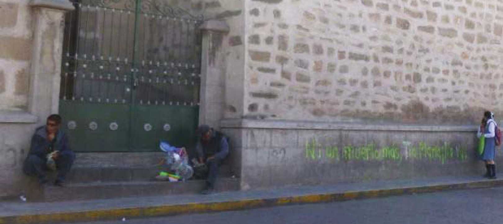 La inscripción apareció el último miércoles. Esta pinta afecta el patrimonio cultural de Ayacucho en momentos en que diversos sectores de la ciudad abogan por el inicio de los procedimientos para declarar a Huamanga como Patrimonio Cultural de la Humanidad.