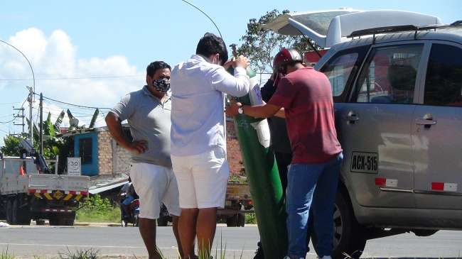 Sin embargo, en la empresa Oxígeno San Martín ubicada por la Vía de Evitamiento de Tarapoto, les informaron que no tenía stock para vender de manera individual, porque estaban abasteciendo a otros hospitales del interior de la región, situación que generó la desesperación de los familiares quienes desde tempranas horas de la mañana comenzaron a forma una fila con sus balones.
