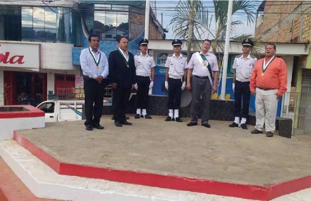 Izamiento de banderas y colocación de ofrendas florales en la plaza de Tarapoto a las 8 am.