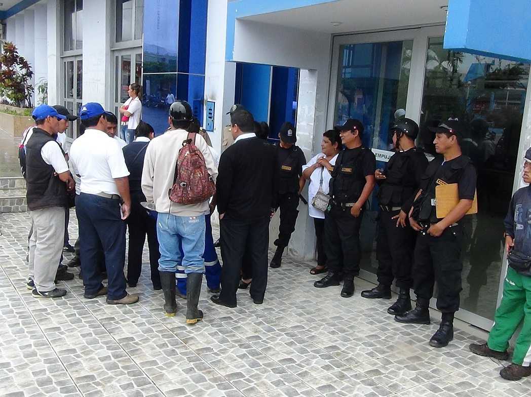 Por más de una hora y en plena lluvia, los trabajadores supuestamente despedidos permanecieron en los exteriores del local municipal, el personal nombrado que ingresó estuvo en el auditorio y en el balcón a la espera de mayor información al respecto, ante esta situación los afectados decidieron denunciar el hecho.