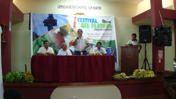 Moyobamba. Con la presencia del vicegobernador de Gobierno Regional en el Colegio de ingenieros, la mañana de ayer martes se llevó a cabo la presentación del Primer Festival del Plátano fijado para el domingo 16 de abril en Yantaló.