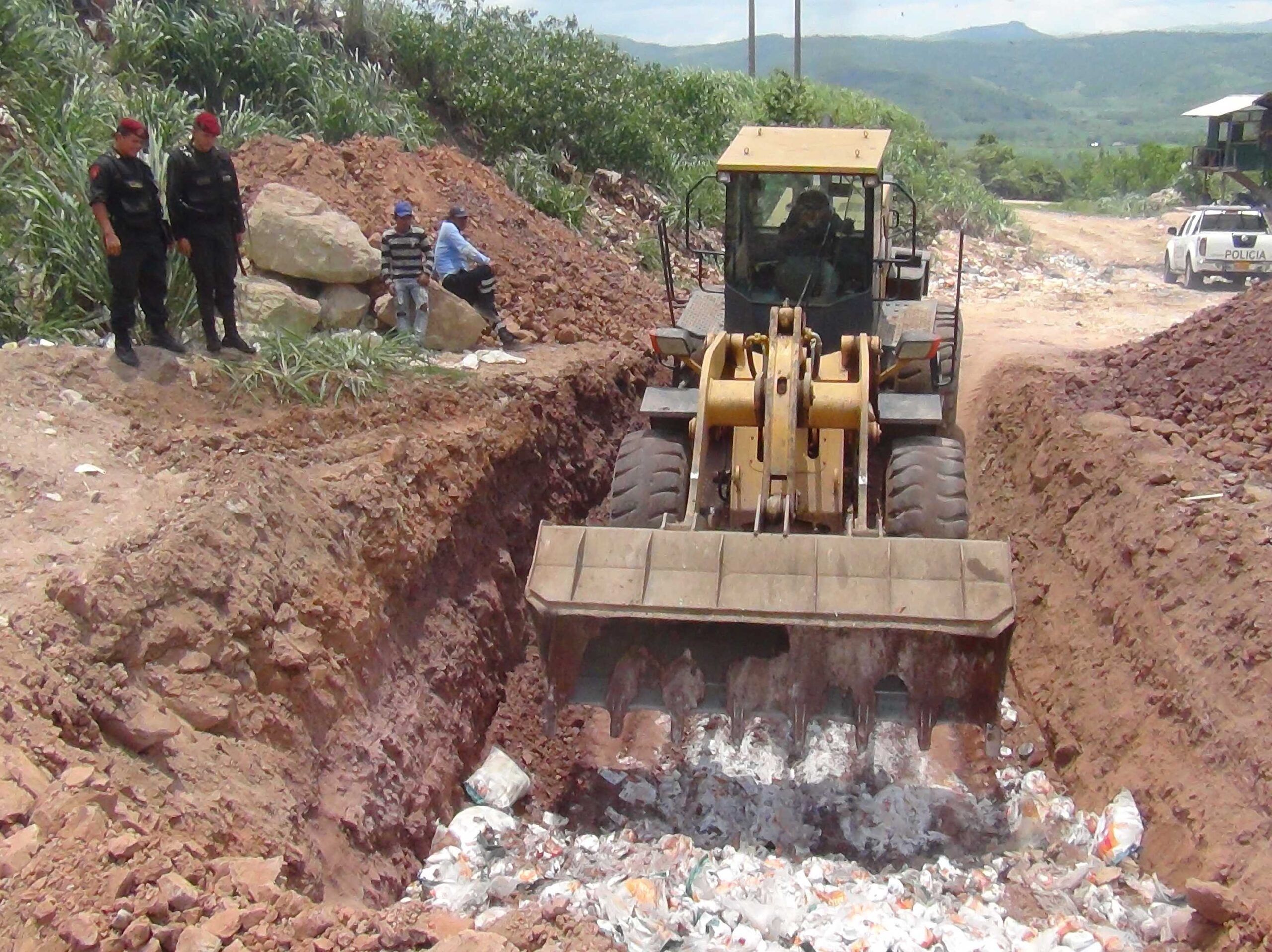 Una vez destruidos se enterró, para que las personas que laboran en el botadero no remuevan los productos, como en ocasiones anteriores. (Robert Ascate)