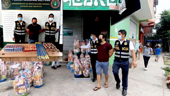 En un operativo multisectorial encabezado por el Dr. Alí Vladimir Palomino Ruelas, Fiscal de Prevención del delito, Policía fiscal, y personal de la Municipalidad Provincial de San Martín con el objetivo de prevenir y combatir el Delito de Peligro Común en la modalidad de Tráfico de Productos Pirotécnicos, intervinieron un negocio ubicado en el Jr. Próceres en el barrio Los Jardines.