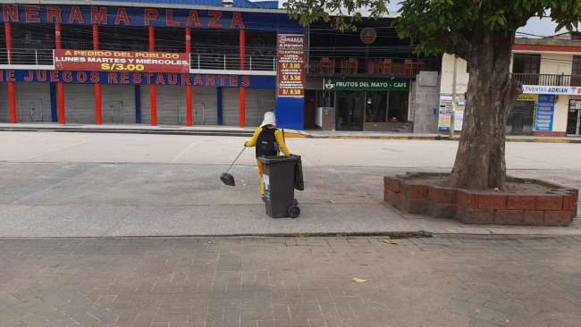 A pesar que la mayoría de la población debe permanecer en su casa ante la emergencia de salud que se vive por el coronavirus; existen labores que merecen resaltar, sacrificando sus días y sus noches, para ellos y ellas el mundo y la vida sigue girando, empuñando una escoba, un recogedor levantando los tachos de los desperdicios que cómodamente o irresponsablemente arrojamos