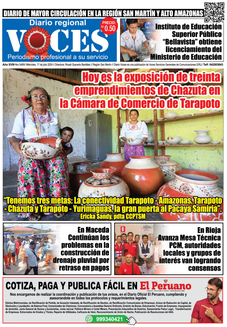 Hoy es la exposición de 30 emprendimientos de Chazuta en la Cámara de Comercio