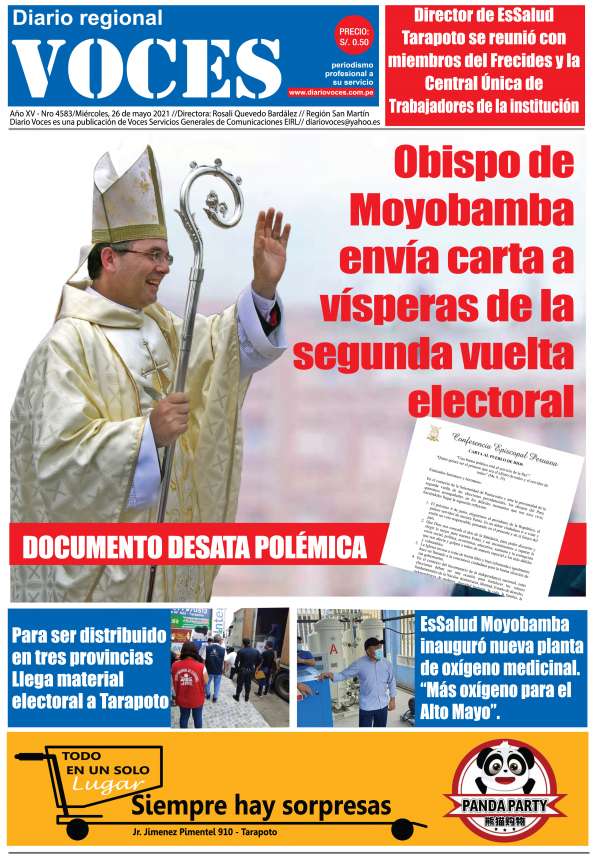PrevAnteriorObispo de Moyobamba envía carta a vísperas de la segunda vuelta electoral en el Perú