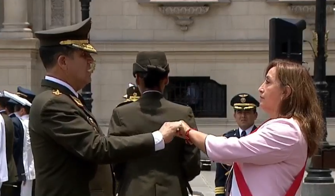 La presidenta de la República, Dina Boluarte, recibió el bastión de mando de mando de las Fuerzas Armadas (FFAA) y la Policía Nacional en una ceremonia celebrada en Palacio de Gobierno.