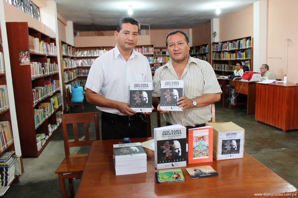 Moyobamba. El director de Cultura, Lic. Luis Alberto Vásquez, hizo entrega la mañana de ayer a varias bibliotecas de la ciudad de Moyobamba, la obra antropológica de José María Arguedas, consistente en 7 tomos de una edición especial, además de dos CD con canciones en homenaje al autor de “Yawar Fiesta”, donados por la Comisión Nacional del Centenario del Natalicio de uno de los autores más importantes de Latinoamérica.