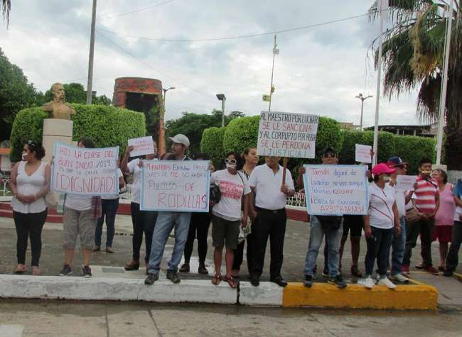 Juanjui. Ante la sorpresa de los presentes, un grupo de maestros sancionados de Juanjui, protestó durante la ceremonia y desfile por el lanzamiento del Buen Inicio del Año Escolar 2019, con esta manifestación exigen a las autoridades educativas dejar sin efecto la sanción de 31 días de suspensión a los maestros que acataron la huelga nacional indefinida en el 2018.