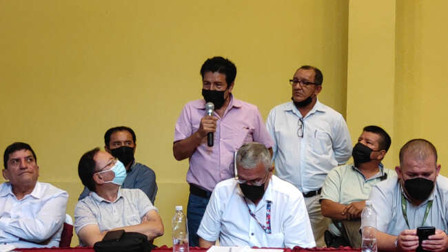 El viceministro Luis Rivera Pérez le escuchó atentamente, luego de ello le pidió reunirse con él cuando termine el conversatorio, situación que se cumplió y se reunieron en privado con los demás dirigentes y acordaron reunirse próximamente en Lima para buscar una solución a sus reclamos. (Hugo Anteparra)