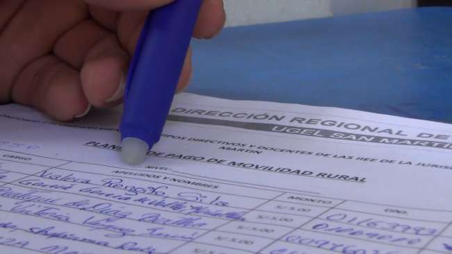 El asesor legal de la Ugel San Martín junto a representantes de la Comisión de Contratos llegó hasta el local del Colegio Jiménez Pimentel para verificar la existencia de un posible hecho irregular en la firma de las planillas de control y ahí se percataron que la tinta del lapicero se borra fácilmente, motivo por el cual anunciaron a las dirigentes del frente magisterial que iban a redactar un acta, sin embargo, se desconoce si lo hicieron.