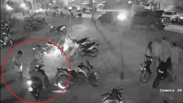Al observar las imágenes de una cámara de video vigilancia, se puede observar como el individuo al no poder arrancar la moto lineal, se toma el tiempo para descansar, pide apoyo a otras personas y luego alumbra con su teléfono celular la parte de la bujía y el carburador para solucionar el problema.