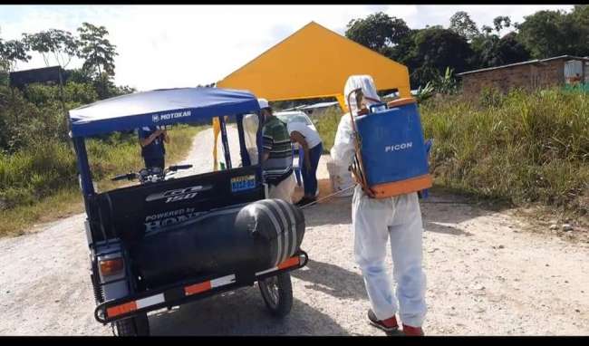 Wilmer Constantino Fernández alcalde del Distrito, informo que desde hace tres semanas no se permite el ingreso de ningún vehículo o persona sin antes haber sido desinfectado.
