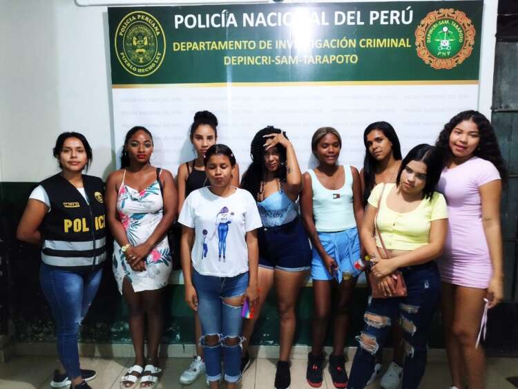 Durante un operativo realizado por el personal de trata de personas de la División de Investigación Criminal y Apoyo a la Justicia en coordinación con personal de Migraciones, el fin de semana realizaron un operativo inopinado a la altura de la cuadra 13 del jirón Ramón Castilla, urbanización los jardines, parte baja de Tarapoto, con el objetivo de prevenir el delito contra la dignidad humana – trata de personas, logrando intervenir a 33 féminas entre extranjeras y peruanas, quienes al momento de ser intervenidas, indicaron no contar con sus documentos respectivos, por lo que fueron trasladadas hasta la sede de la Divincri, para que, mediante el Sistema Automatizado de Identificación de Huellas Dactilares (AFIS), logren identificar y verifiquen si cuentan con requisitoria al respecto a la peruanas y a las extranjeras verificar su situación legal en país teniendo como resultado negativo.Luego de realizar las diligencias respectiva de control de identidad, las 33 mujeres, entre peruanas, ecuatorianas, venezolanas y colombianas, indicaron al personal policial que todas ellas ofrecen servicios sexuales a los concurrente (parroquianos) que circulan por dicho jirones, todas coinciden que brindan servicios sexuales cobrando la cantidad de S/.70.00 soles, por cada servicio sexual que lo realizan en los hospedajes o alojamientos que están acondicionados en dichos jirones que han sido identificados con los nombres de “Caracolito”; “Girasoles 1 y 2”; y “K locura”.Finalmente, luego de culminar las diligencias respectivas y al no encontrar que las intervenidas tenían antecedentes o se encontraban de manera clandestina, fueron liberadas.