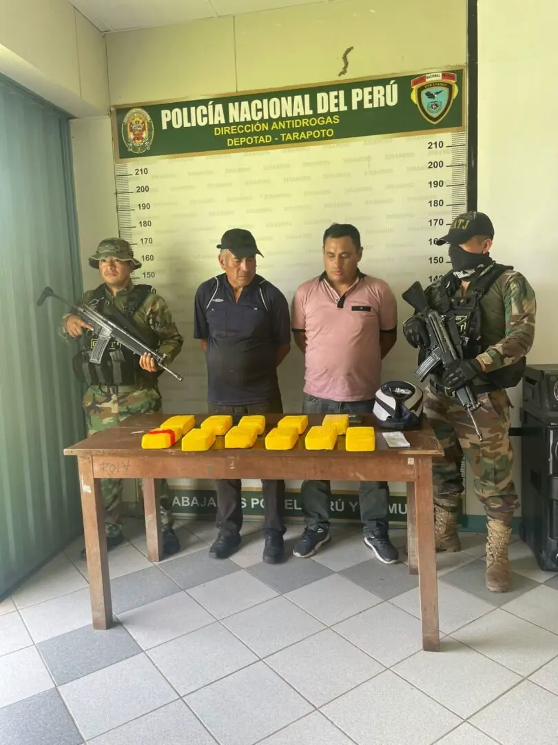 Agentes Antidrogas pertenecientes a la División de Maniobras Contra el Tráfico Ilícito de Drogas Huallaga (DIVMCTID Huallaga) de la Dirandro, al mando del coronel PNP David Díaz Pérez, ejecutaron una exitosa operación de interdicción que culminó con la incautación de 11 paquetes de alcaloide de cocaína, con un peso total de 11.452 kilogramos, y la detención de dos personas implicadas en el transporte de la droga en la región San Martín.