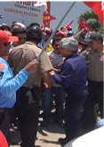 Los docentes se mostraron indignados y por un momento empujaron a dos jóvenes suboficiales de la Policía Nacional del Perú que llegaron para brindar seguridad a los funcionarios regionales. Por su parte el profesor William Panaifo, subsecretario del Sindicato Único de Trabadores de la Educación de San Martín (SUTESAM) negó que los responsables de la trifulca sean profesores, indicando que se trata de personas infiltradas que quieren hacer quedar mal su medida de fuerza.