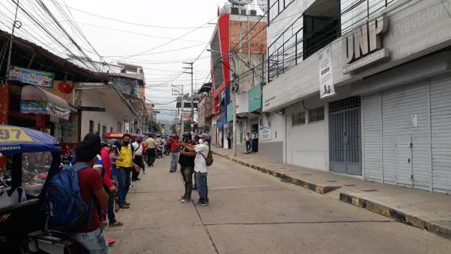 Los docentes se concentraron en la plaza Mayor de Tarapoto, desde allí marcharon hacia el frontis de la ONP ubicado en la cuadra uno del jirón San Pablo de la Cruz, donde encontraron las puertas cerradas, a pesar de ello improvisaron un mitin en el lugar para exigir el monto de sus aportaciones.