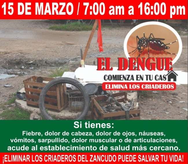 “Depende de todos nosotros bajar y hasta desaparecer la presencia del Dengue en nuestra región, solo con la sencilla tarea en nuestras casas de eliminar los criaderos del vector del Aedes Aegypti zancudo que transmite el Dengue; por ello tenemos que eliminar recipientes en desuso, botellas, llantas, latas, cascaras de coco, entre otros objetos que acumulen agua”, recomendó el gobernador Pedro Bogarín Vargas.