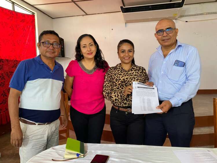La entrega del mobiliario escolar estuvo a cargo de Kerlin Armas Pisco, directora de estudios y proyectos y Lucia Gandy Flores, jefa de Patrimonio del proyecto Huallaga.