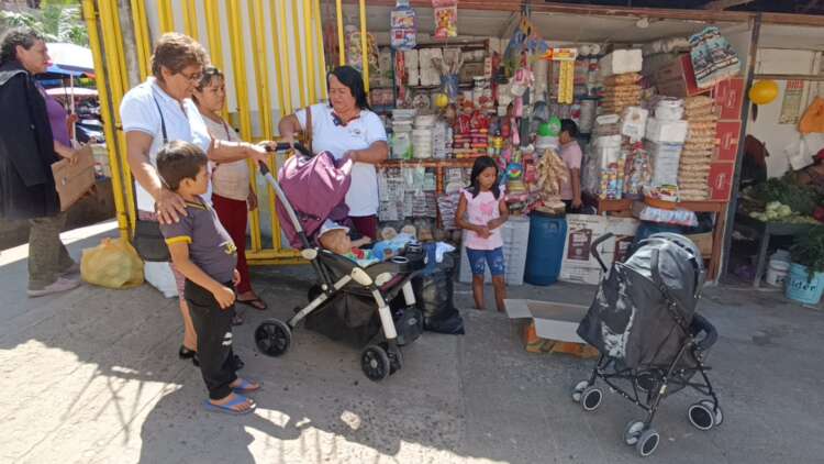 Ayer por la mañana, las damas solidarias de Manos Unidas llegaron hasta la cuadra ocho del jirón Tahuantinsuyo, lugar donde Georgina Gordillo Marlo vende sus granadillas en la vía pública junto a hijo Elías que fue captado durmiendo en una caja de cartón. Grande fue su sorpresa cuando le comunicaron que personas de buen corazón le donaron dos cochecitos para su bebé y de esa manera tenga más comodidad cuando viene a vender sus productos.