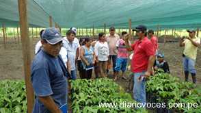 Luego, aprovechó el novísimo vivero demostrativo de dos mil metros cuadrados, construido por la Dirección Regional de Agricultura de San Martín (DRASAM), para explicar a los productores sobre el manejo de un vivero, pues desde allí se va orientando la formación de las plantas y la selección del clon de alto rendimiento en las parcelas, indicó el experimentado productor.