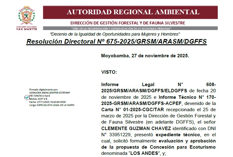En conferencia de prensa, el ecologista Iván Rojas denunció públicamente presuntas irregularidades en el otorgamiento de concesiones forestales, ecoturísticas y mineras en la Región San Martín, durante una conferencia de prensa en la que presentó contratos, resoluciones administrativas e informes técnicos oficiales.