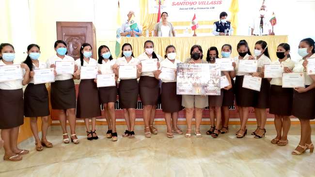 La promoción lleva el nombre de la docente Lastenia Santoyo Villasis, directora de este instituto, está integrada por 19 estudiantes de Inicial EIB y 15 de primaria EIB, que iniciaron sus estudios en agosto del 2016.