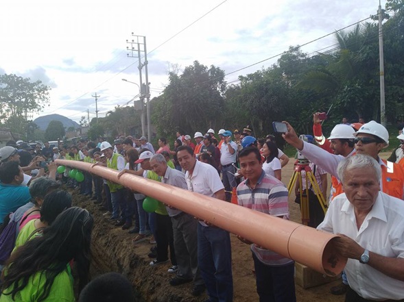 Moyobamba. Tal como se había programado la tarde del sábado, el alcalde de Moyobamba fue el encargado de colocar el primer tuvo en el marco del inicio de la ejecución del proyecto de alcantarillado para la ciudad de Moyobamba que cuenta con un plazo de ejecución de 560 días calendarios y un presupuesto superior a los 63 millones de soles.