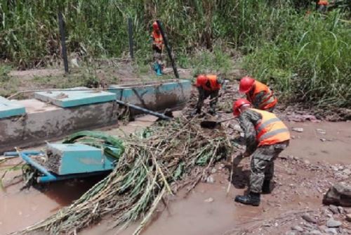 Los militares que forman parte de la compañía de intervención rápida acudieron se hicieron presentes para apoyar con los trabajos de descolmatación y limpieza en parte del cauce de la quebrada y así mitigar los daños causados.